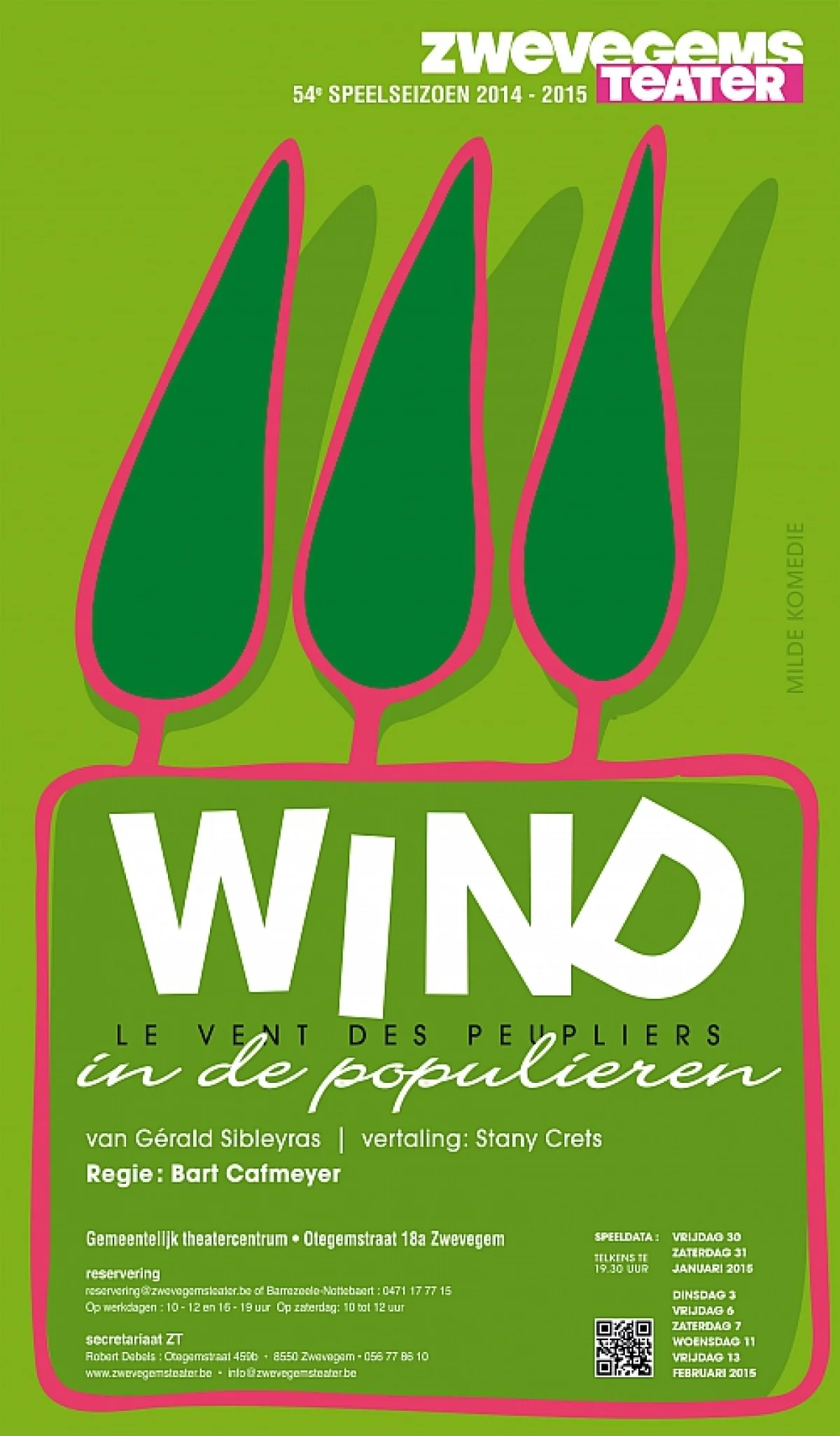 Sibleyras voert drie oud-strijders op die de dood afwachten in een rusthuis voor ex-militairen. Er rest hen niet veel meer dan te bakkeleien over de fratsen van hun verzorgster alias zuster Madeleine of te kijken naar de populieren, aan de overkant van het rusthuis. Het thema is helemaal niet hip of dynamisch en wie zou denken dat het stuk een klaagzang is over de dood, die heeft het lelijk mis. Ondanks het thema, de vergankelijkheid van het leven, is ‘Wind in de populieren’ een milde lofzang over het (oudere) leven. Het stuk bewees onder meer in London en Parijs een echte publiekslieveling te zijn.