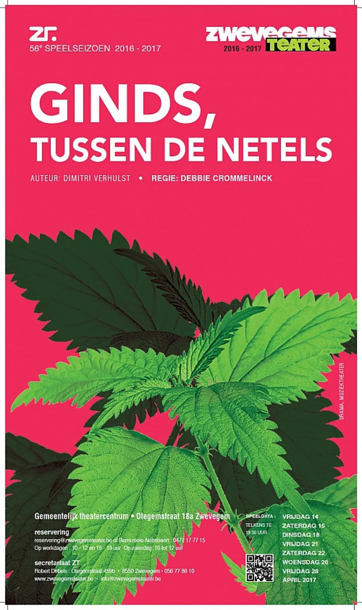 Voor ‘Ginds, tussen de netels’ heeft schrijver Dimitri Verhulst zich laten inspireren op het verhaal ‘Bloedbruiloft’ uit 1933 van de Spanjaard Federico Garcia Lorca. Hij verplaatst de handeling naar een denkbeeldig Belgisch dorpje Urtica, de wereldhoofdstad van de brandnetels, waar twee families al generaties lang een bloedige vete uitvechten. De clan Delfosse bekampt de familie Muermans op leven en dood. En waarom? Afgunst over de grond, discussies over verkoopprijzen. Celeste Delfosse verwoordt het als volgt: “de waarde van een leven loopt hier gelijk op met de prijs van een vierkante meter”. Als dan Celestes zoon Cedric op trouwen staat met Emelyne, een jonge vrouw die ‘iets’ gehad heeft met Leon Muermans maar op haar trouwplechtigheid wegloopt van haar man en haar oude minnaar volgt, voltrekt zich (alweer) een drama in Urtica: beide jongemannen maken elkaar af in een verbeten messengevecht. ‘Ginds, tussen de netels’, een liefdesverhaal in een modern Verhulst-jasje voorzien van de nodige humor maar met een onvermijdelijke tristesse die eigen is aan het leven…