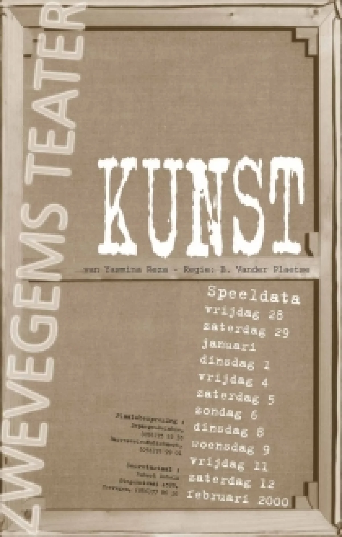 De Franse schrijfster Yasmina Reza werd in 1957 geboren uit een Iraanse vader en een Hongaarse moeder. Haar eersteling was meteen een voltreffer, want ze won ermee een 'Molière' voor het beste nieuw Franstalig stuk. Diezelfde eer viel haar te beurt met haar derde werk "Art", dat al vlug een klassieker werd van het internationaal toneelrepertoire: in Duitsland uitgeroepen tot hét stuk van het jaar, in Londen al jaren op de affiche en in alle grote steden van Europa met succes opgevoerd. In Vlaanderen zorgde het Raamtheater van Walter Tillemans voor de Nederlandstalige creatie, KVS en MMT volgden en… het ZT speelt als eerste amateurgezelschap in Vlaanderen deze hedendaagse komedie voor drie mannen! "Kunst" is geen toneel met veel bravoure, maar een miniatuur vol verrassingen: doorlopend grappig, maar ook ontroerend en intelligent. Wie zich vastpint op de titel komt bedrogen uit. Verwacht dus geen betoog over kunst, alhoewel fijntjes de spot gedreven wordt met snobs die bij voorbaat alle moderne kunst goedvinden en zich aldus het imago van kenner en progressief individu toe-eigenen. In deze komedie gaat het in de eerste plaats over de kunst van de vriendschap. Of hoe een wit doek de relaties tussen drie vrienden kan vertroebelen. Met "Kunst" zet het ZT zijn traditie verder: nu en dan de grenzen verleggen in het repertoire van het amateurtheater.